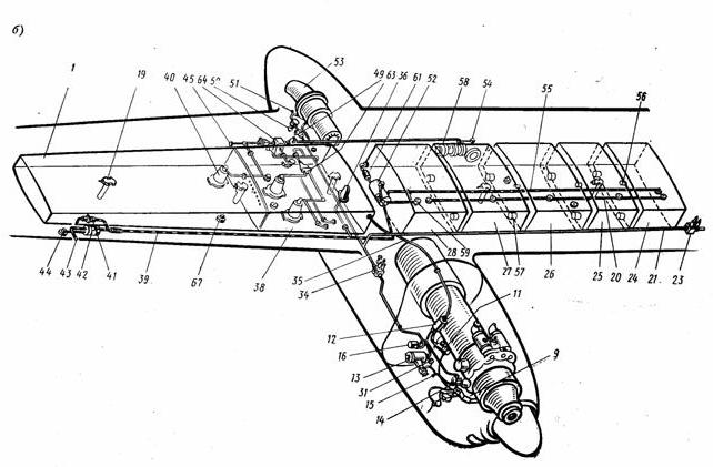 по пять в межлонжеронном пространстве между нервюрами № 1…6 центроплана.