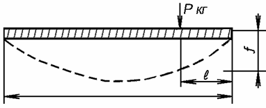 г) погнутость лопастей, имеющих стрелу прогиба f не более 50 мм при расстоянии между двумя опорами не менее 400 мм и минимальном плече l, равном 130 мм (рис. 124).